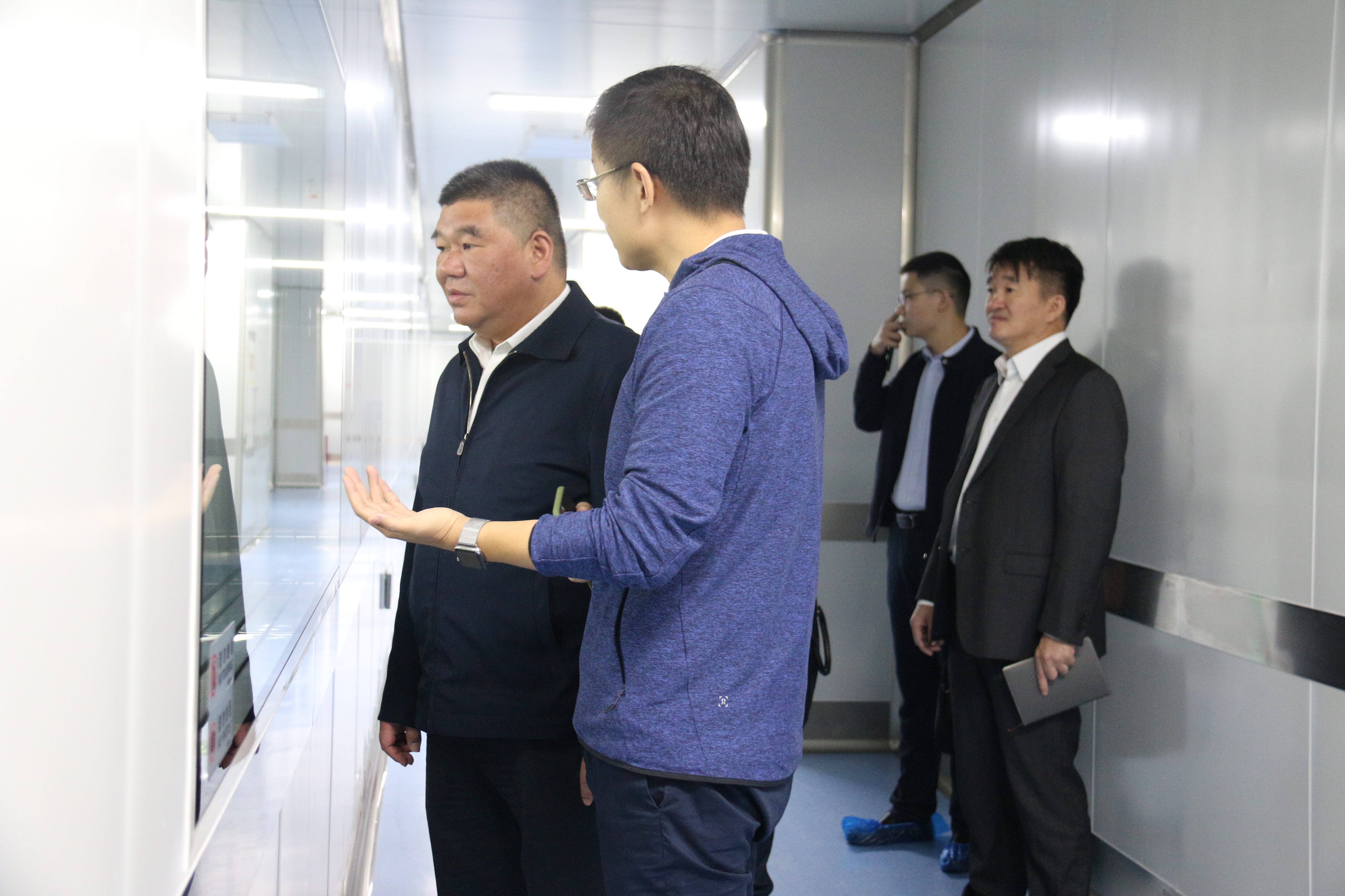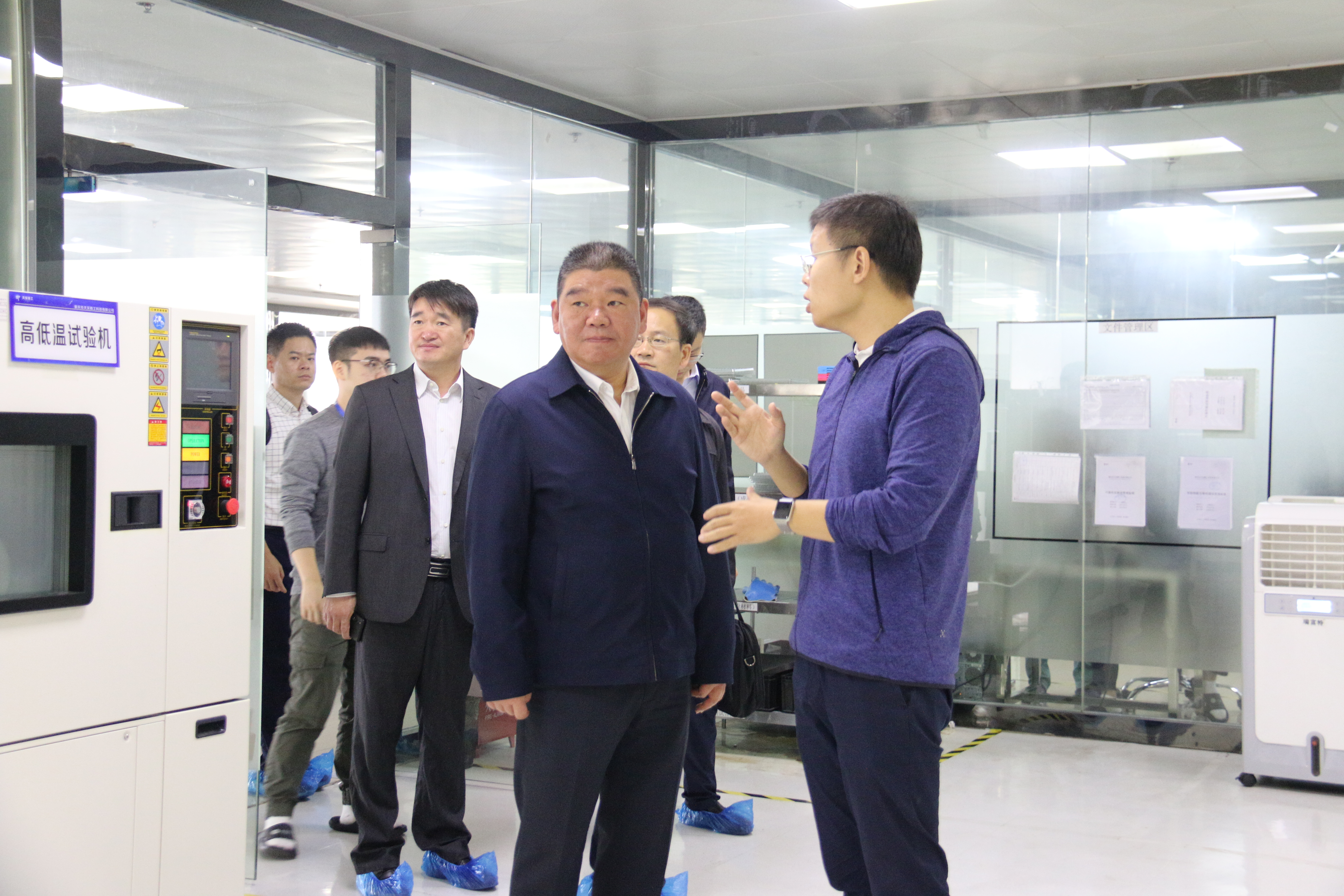 在參觀可靠性實驗室時,蔣總為其講解了公司產品在高寒、高壓、高熱等情況下的模擬實驗,表示天實精工的每一個產品都是經過了嚴格測試,張昊書記對天實精工發展取得的成績給予了高度的評價。
